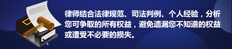 律師結(jié)合法律規(guī)范、司法判例、個(gè)人經(jīng)驗(yàn),分析您可爭(zhēng)取的所有權(quán)益,為您掌握主動(dòng)權(quán)出謀劃策,避免遺漏自己不知道的權(quán)益或遭受不必要的損失,保障您的權(quán)益最大化。